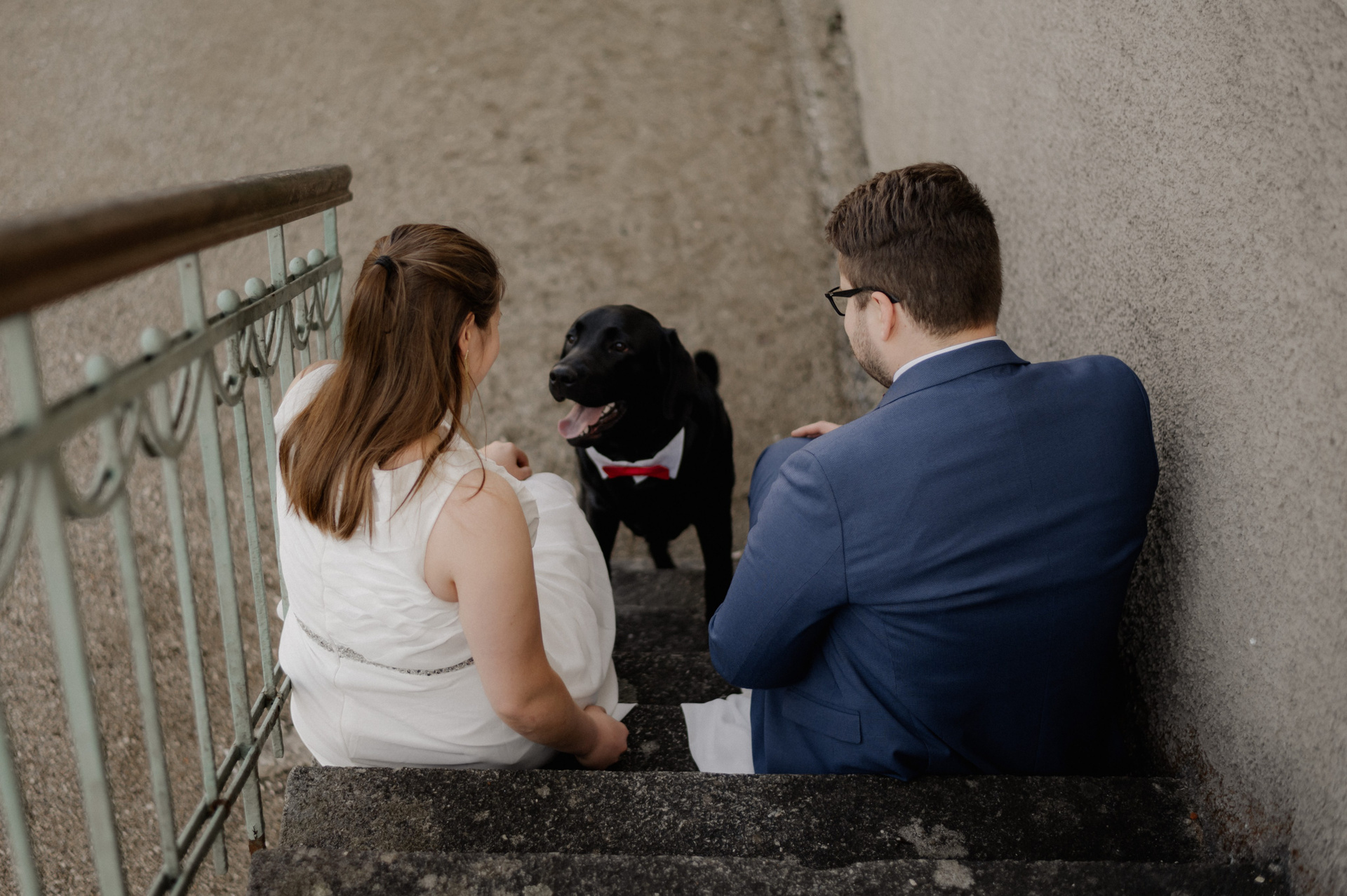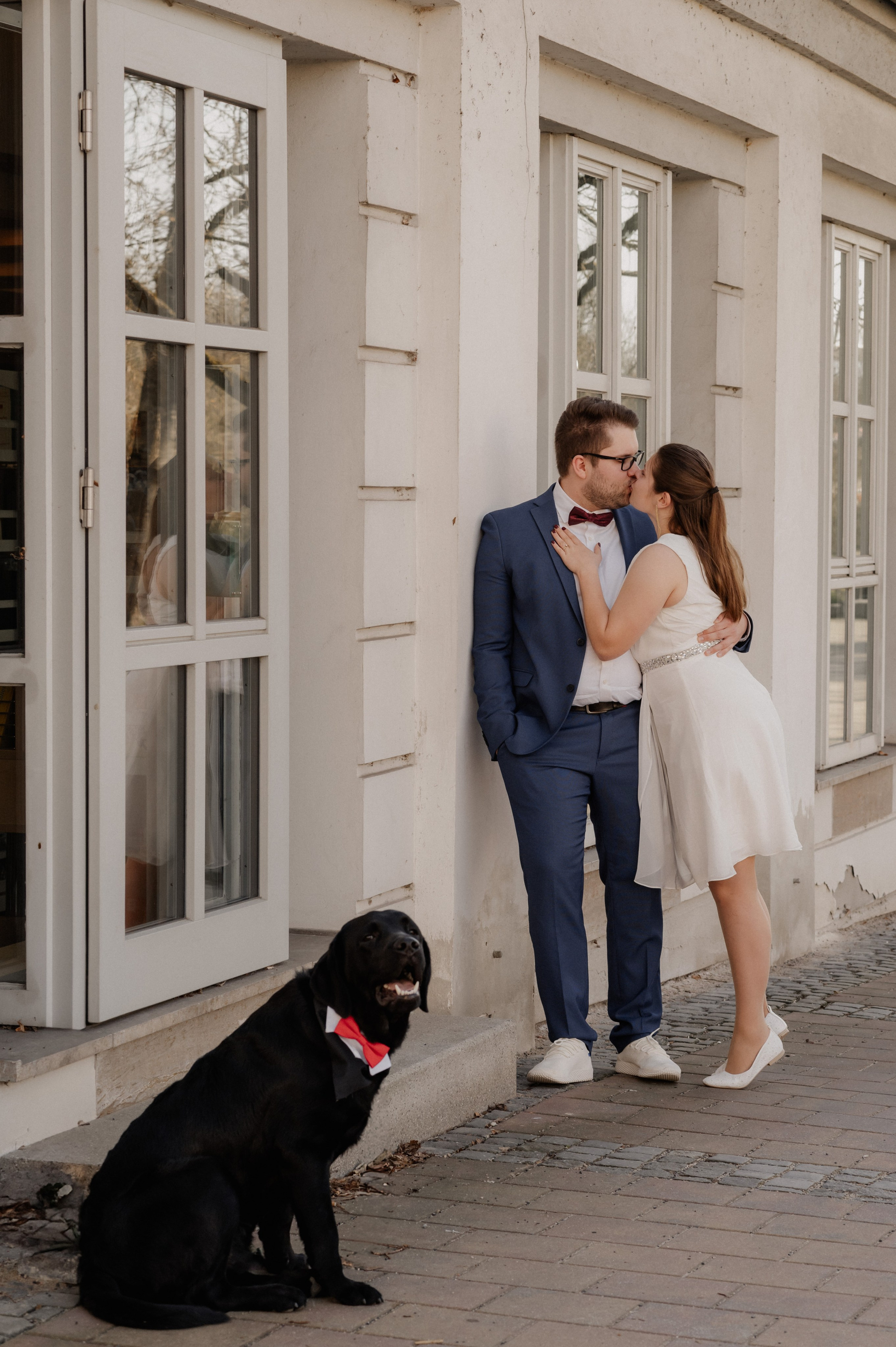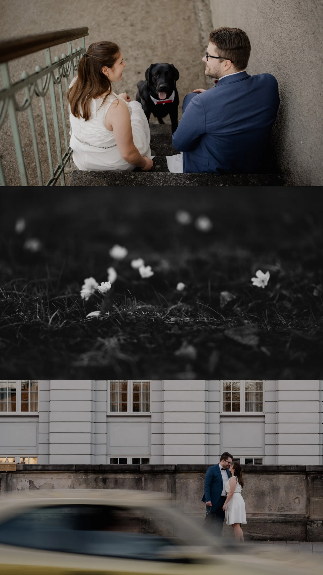 Diese zwei haben heimlich geheiratet – ohne großes Fest, aber mit ganz viel Liebe. Und abends haben sie sich entschieden, diesen Moment festzuhalten. Nur sie, ein Hund und eine Kamera. Zum ersten Mal vor der Linse – aufgeregt, echt, wunderschön.