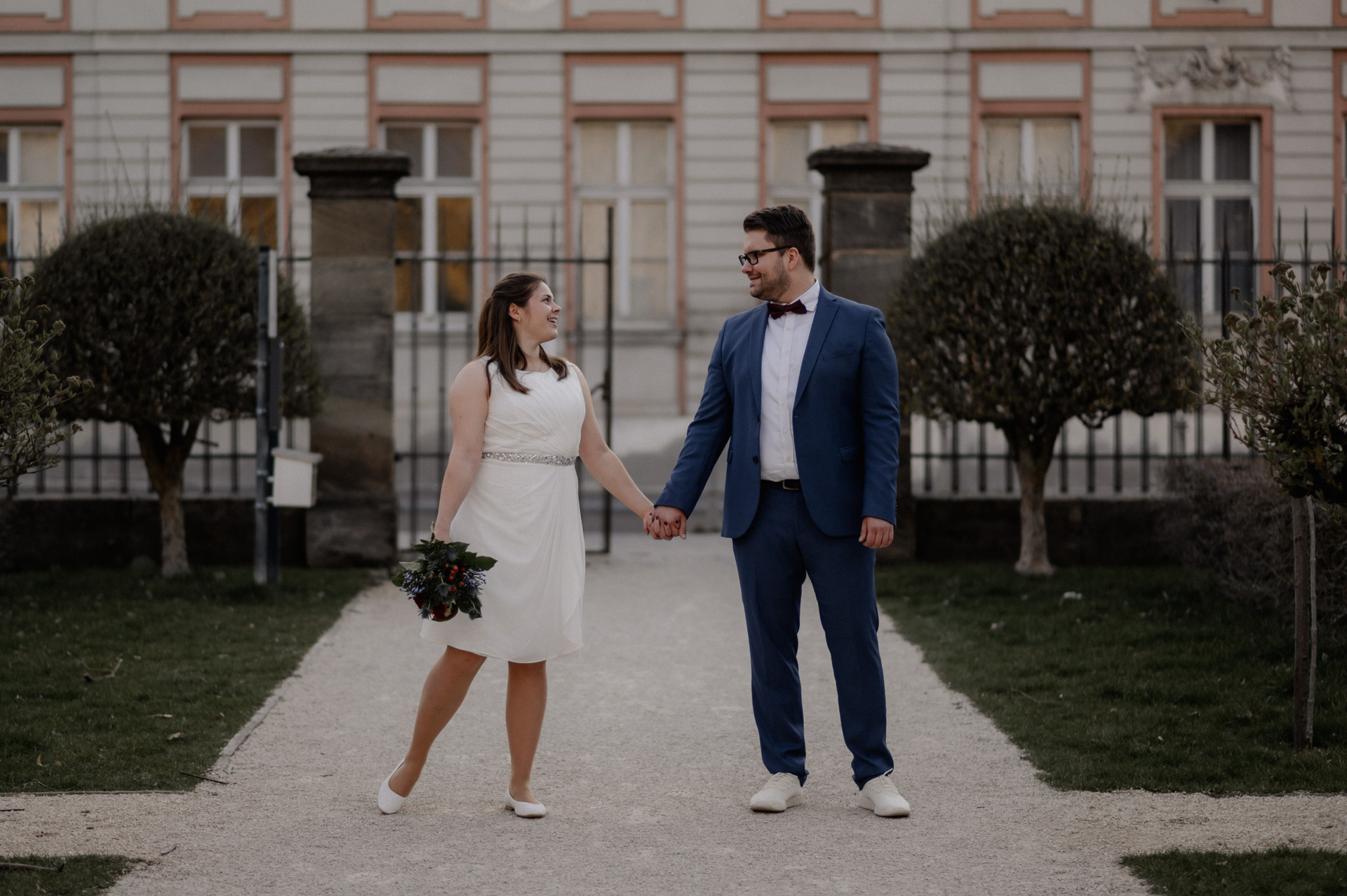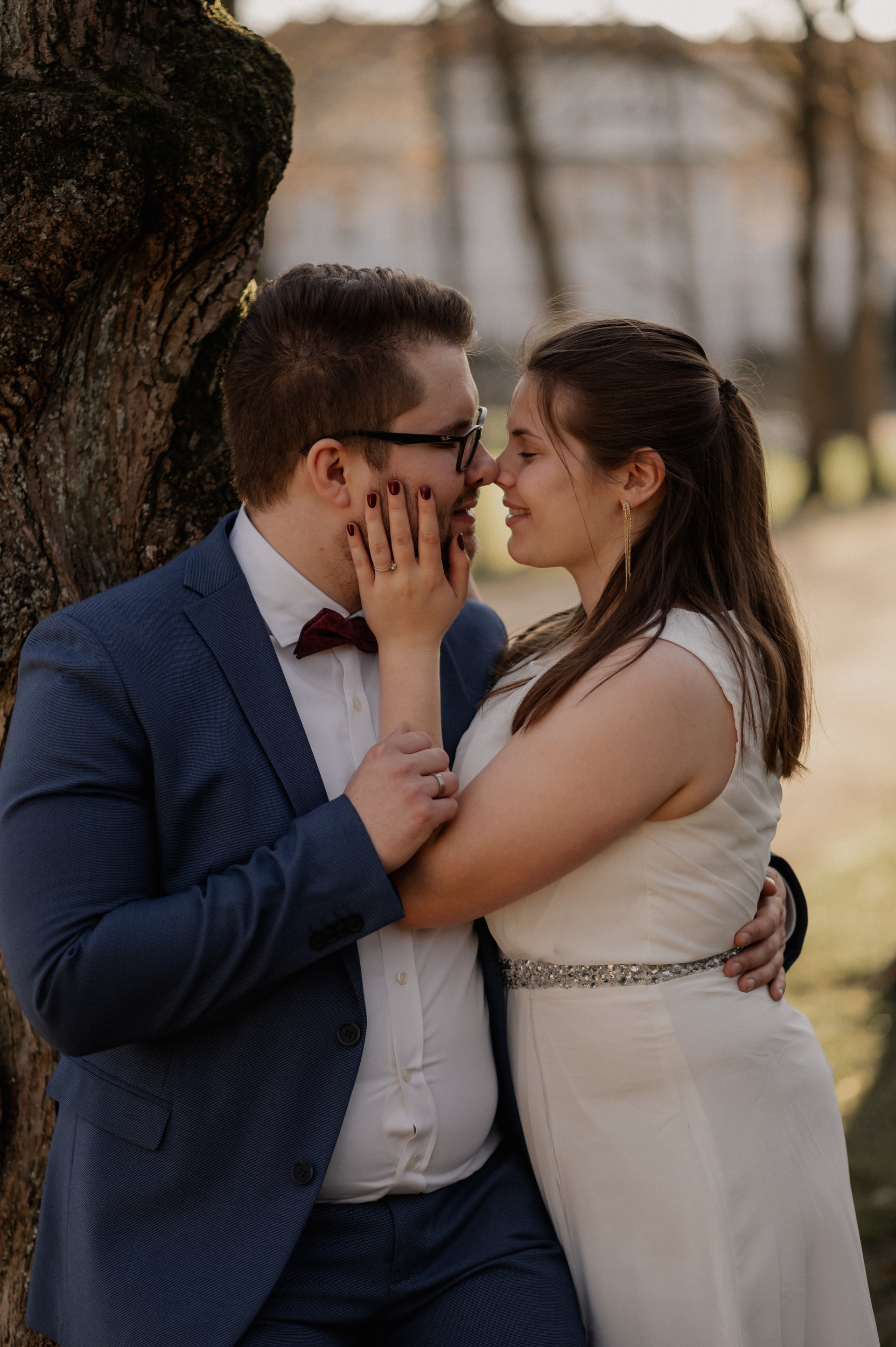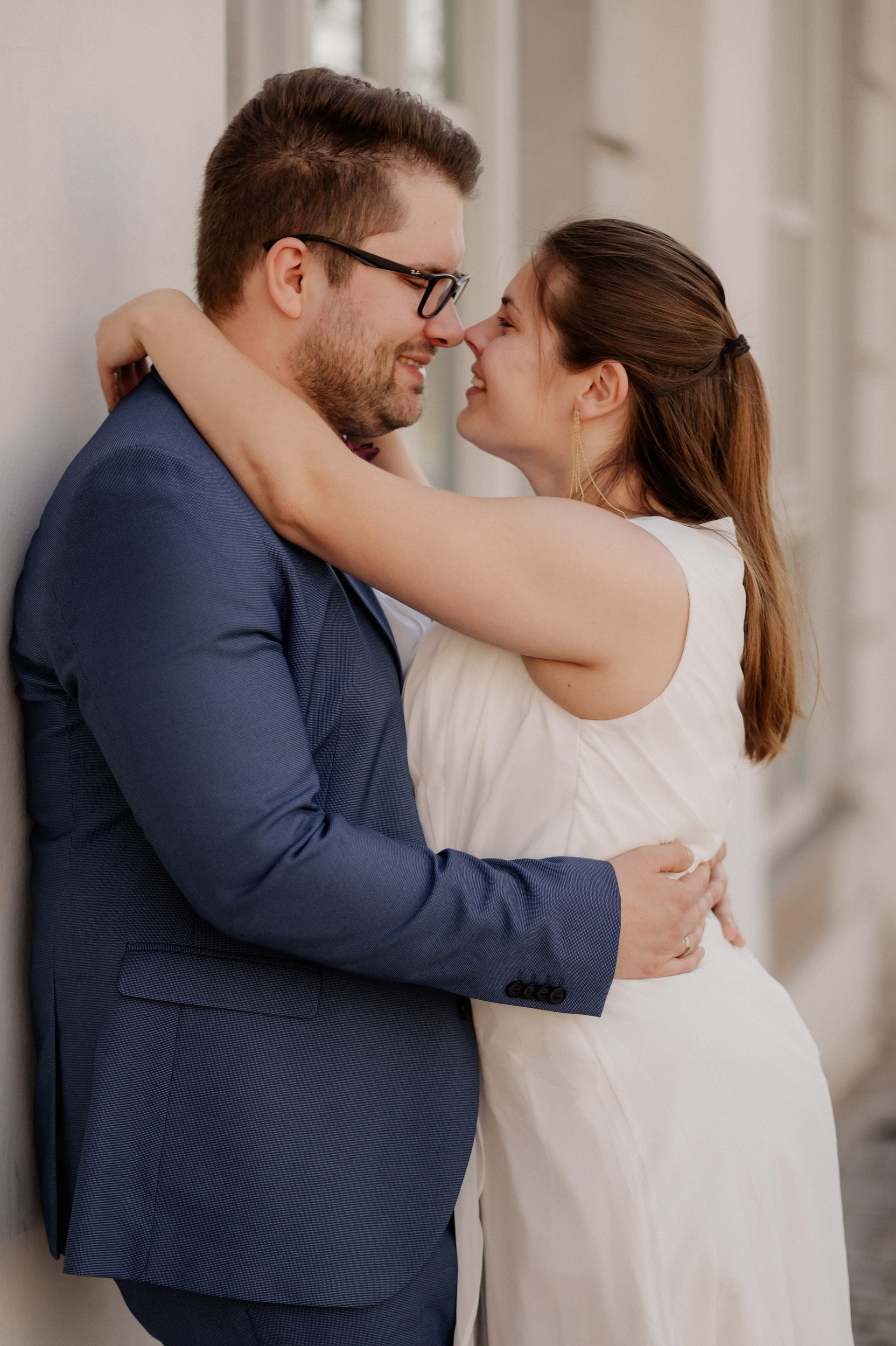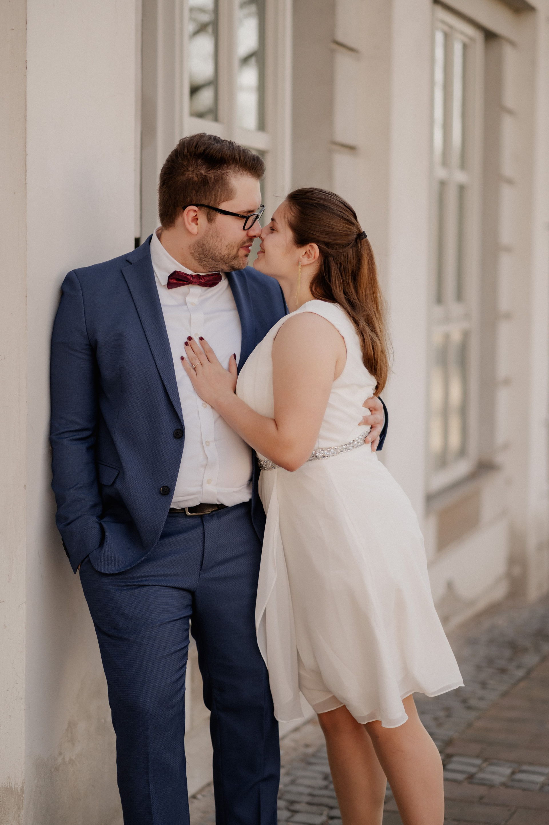 Diese zwei haben heimlich geheiratet – ohne großes Fest, aber mit ganz viel Liebe. Und abends haben sie sich entschieden, diesen Moment festzuhalten. Nur sie, ein Hund und eine Kamera. Zum ersten Mal vor der Linse – aufgeregt, echt, wunderschön.